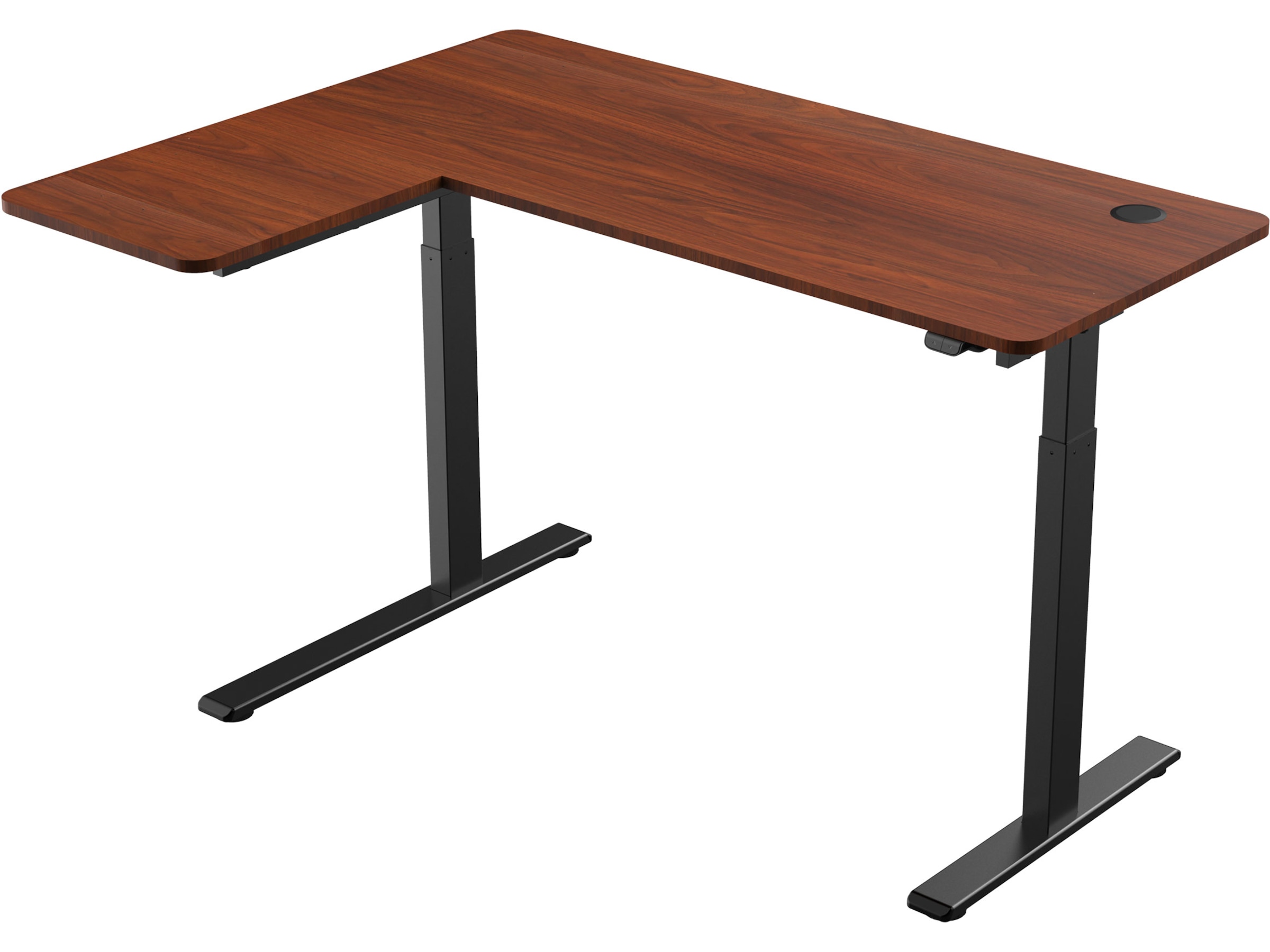 Ergonomisk hev-/senkbart L-formet skrivebord med motor Valnøtt