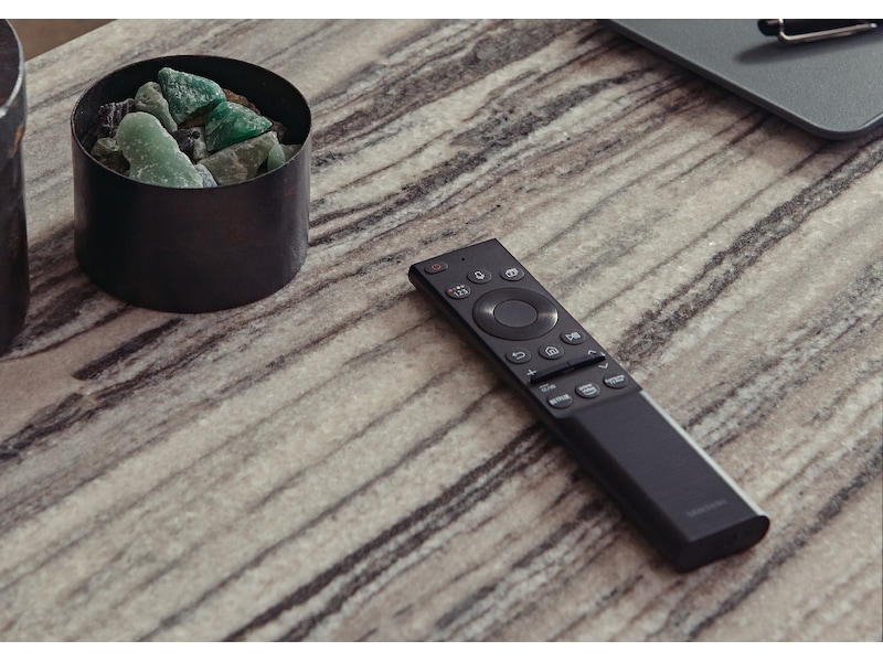 Mange enheter koblet til TV-en trenger ikke å bety et salig ledningsrot. Slim One Connect Box samler alle tilkoblingene og fører strøm og data til TV-en ved hjelp av bare én transparent ledning. Boksen glir sømløst inn på baksiden av TV-foten eller plasseres separat fra en veggmontert TV. Du får da et mer harmonisk rom uten unødig rot.