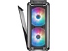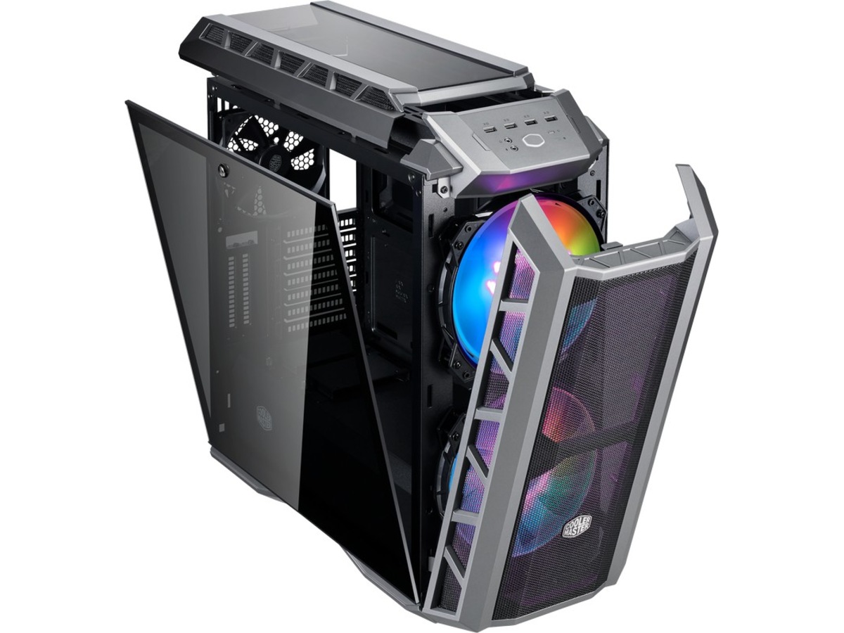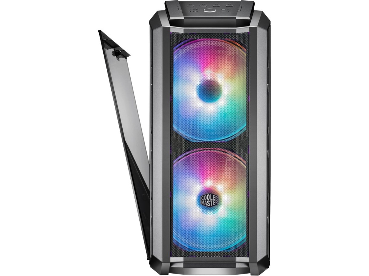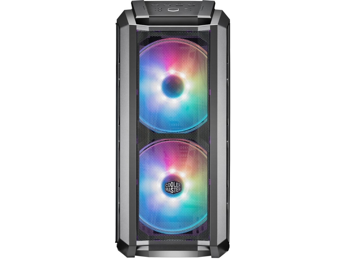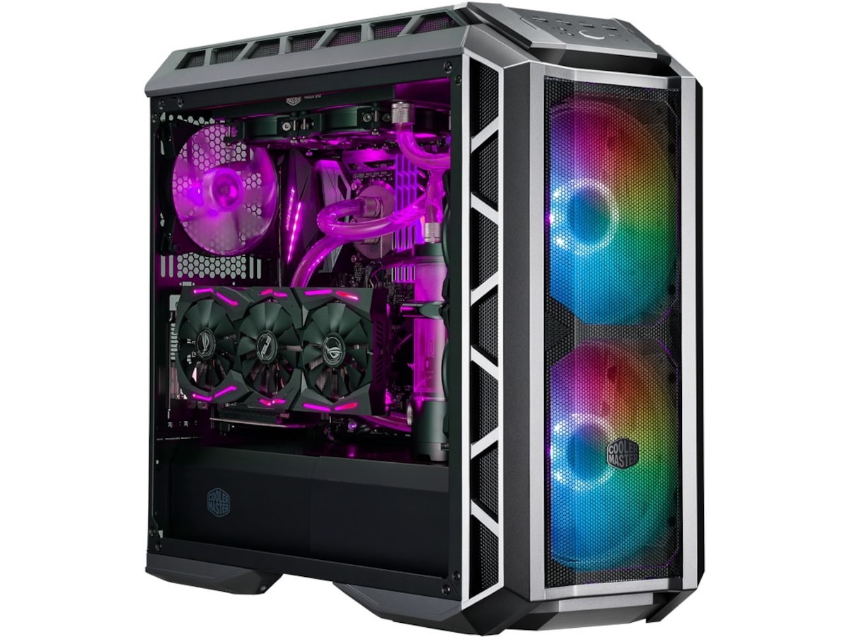 Nettingen spenner over hele fronten for å gi en uhindret bane for luft som føres til de to massive viftene bak panelet. Uansett om ekstrem vannkjøling eller luftkjøling er den foretrukne metoden, leverer MasterCase H500P Mesh ARGB allsidighet og ytelse, og dessuten med tilpasningsmuligheter med ARGB-belysning.
