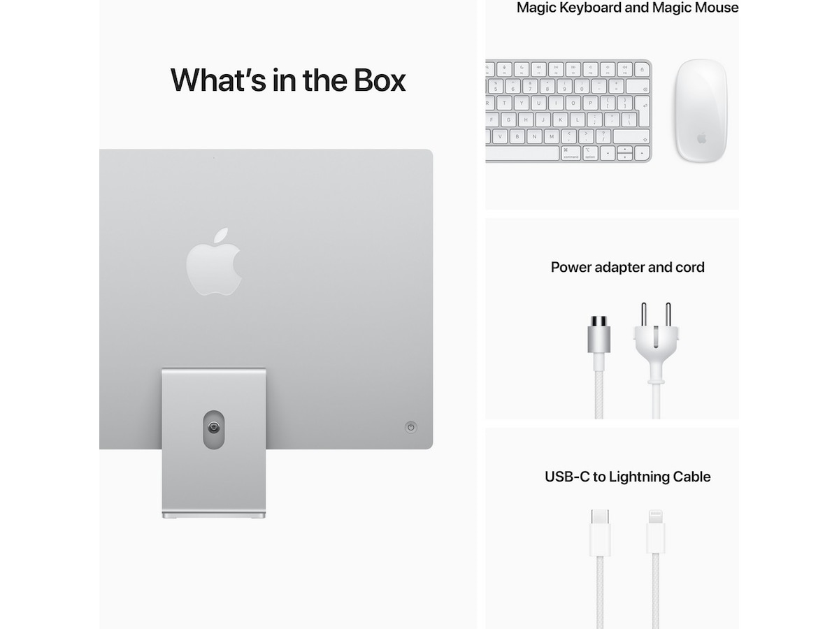 - Oppslukende 24-tommers Retina 4,5K-skjerm med stort fargerom (P3) og lysstyrke på 500 nit*