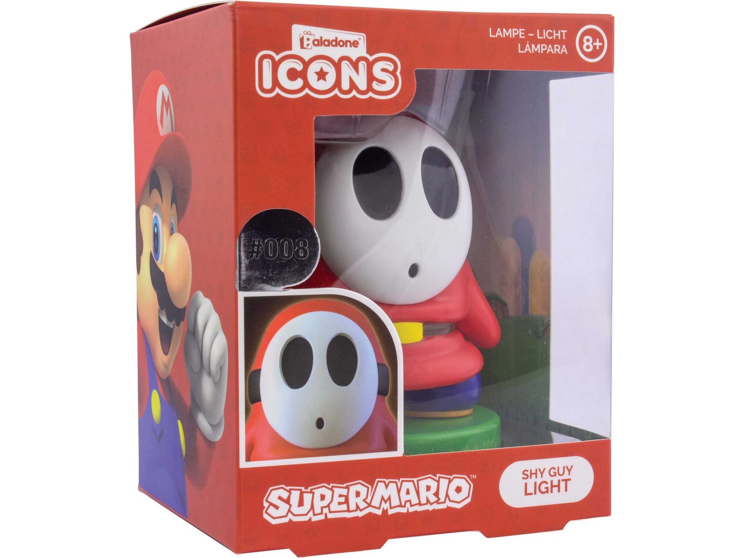 Shy Guys bruker alltid en maske fordi de er så sjenerte. De ser kanskje søte ut, men de er vanlige fiender i Mario- og Yoshi-spillseriene. Red Shy Guys er kjent for å falle av kanten, så det er kanskje best å plassere denne lille fyren litt unna kanten, bare sånn i tilfelle. Dette 3D-lyset er 10 cm høyt og drives av 2x AAA-batterier (ikke inkludert). Det er dessuten bærbart, slik at du kan plassere det hvor som helst hjemme eller på jobben og dele din entusiasme for alt som har med Super Mario å gjøre med kollegene dine. Leveres i en eske med vindu og trykt logo på, og er den perfekte gaven til enhver Nintendo- eller Super Mario-fan. Det fungerer også som et flott tillegg i enhver fans memorabiliasamling. Disse maskerte fiendene kan sees i mange Mario-spill og spin-off-spill. De gjorde sin første entré i et Mario-spill i den amerikanske versjonen av Super Mario Bros 2, men dukket ikke opp igjen før Super Mario World 2 Yoshi's Island. Det finnes flere forskjellige varianter av Shy Guys i et utvalg av Mario-spill og andre relaterte spill. Det er laget av nedbrytbar plast, så du kan handle med god samvittighet når du vet at når Shy Guy Icon Light nærmer seg slutten av sin levetid, så vil plasten bryte ned takket være en revolusjonerende organisk ingrediens og ikke ta opp plass på en søppelfylling.