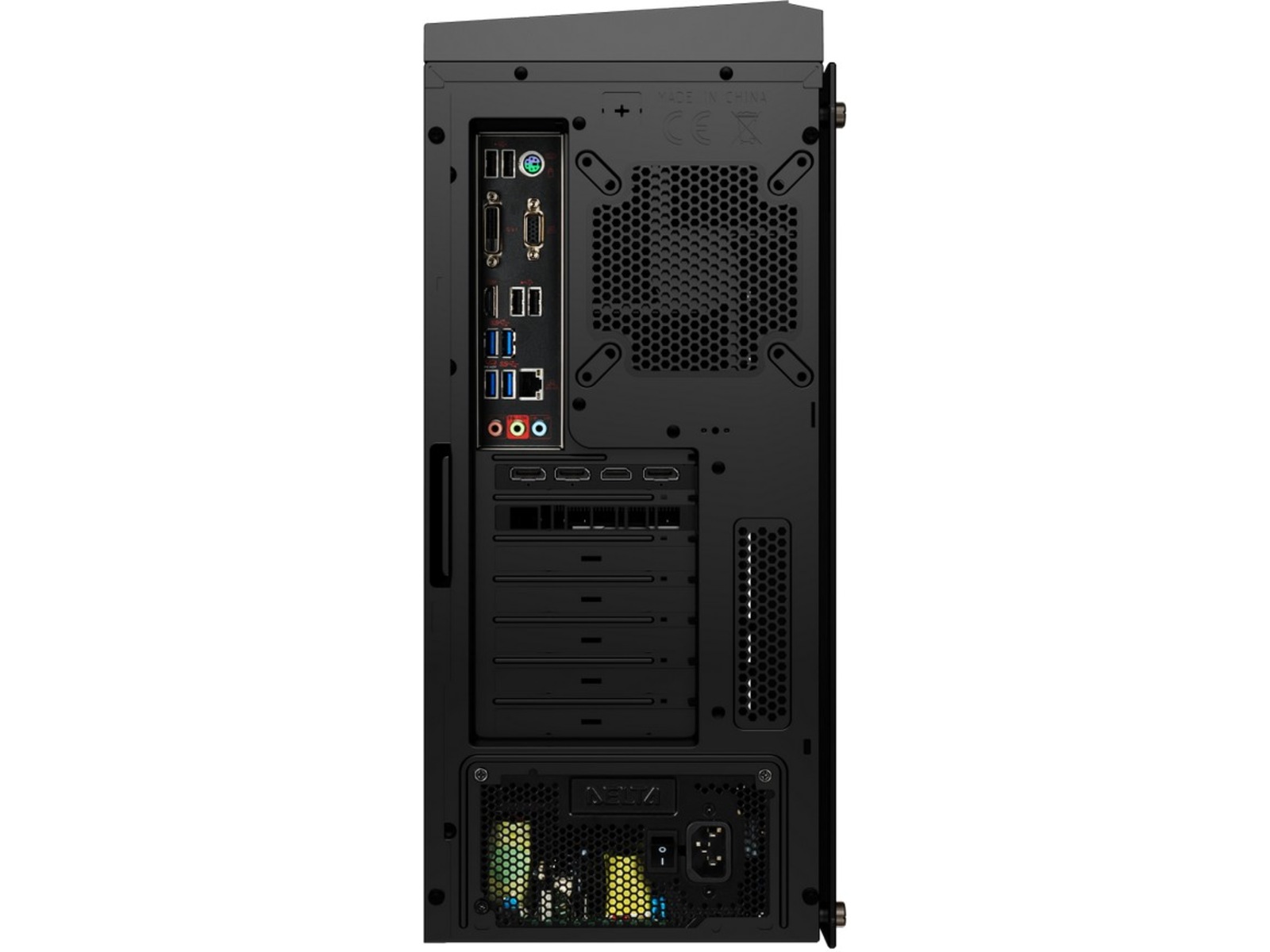 MAG META 5 Gaming Desktop har en stor overflate for luftinntak, og et stort innvendig rom for installasjon av vifter. En slik effektiv varmeavledende design forhindrer at systemet blir overopphetet under høy ytelse.