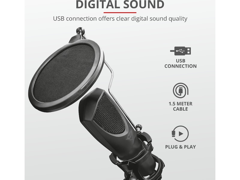 - Inkluderer støtdemper, popfilter og stativ
