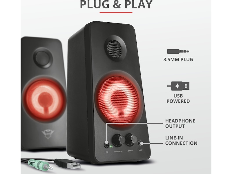| Høyttalere inkludert | 2 x høyttaler - toveis - 9 watt - 20 - 20000 Hz - kablet |
