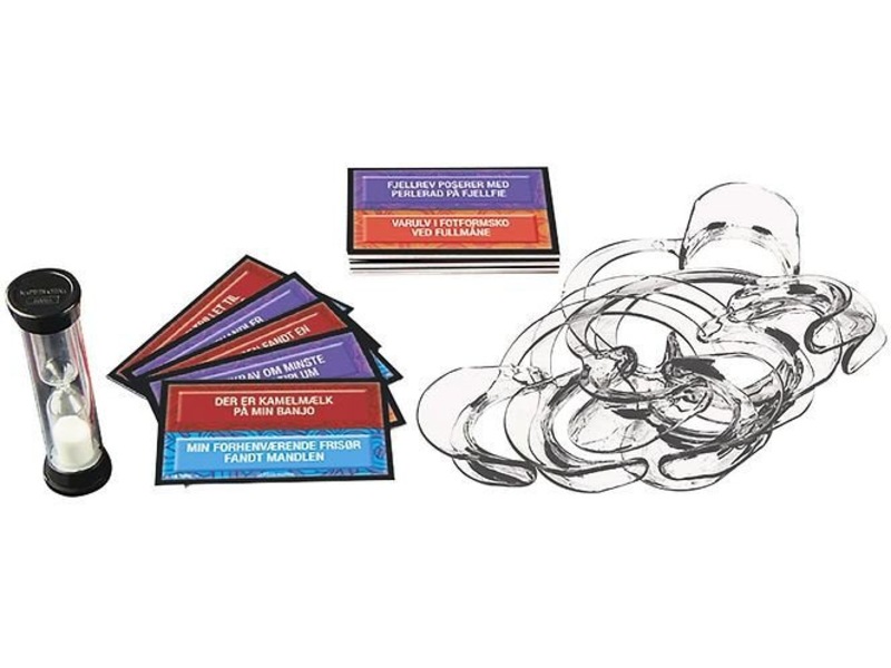 - 100 dobbeltsidige kort og timeglass.