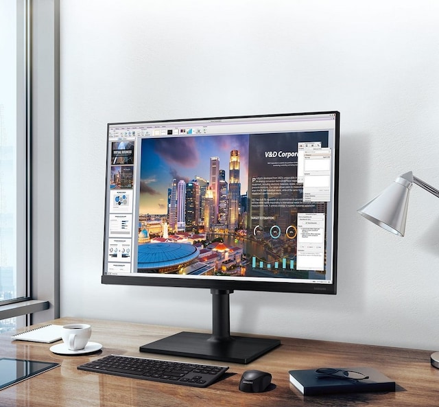 Overlegen design for den ultimate allsidighet i hverdagen. Den høydejusterbare skjermen kan svinges, vippes og dreies slik at du kan se arbeidet ditt slik du vil. Den slanke og rene designen gir et snev av stil til interiøret på kontoret og er VESA-kompatibel for enkel installasjon.