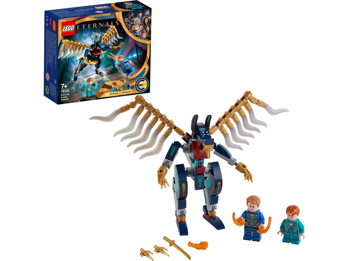 - Gi unge superhelter muligheten til å iscenesette actionfylte eventyr basert på Marvel Studios-filmen The Eternals med det flotte lekesettet LEGO® Marvel Ikaris og Sprite mot en Deviant (76145).