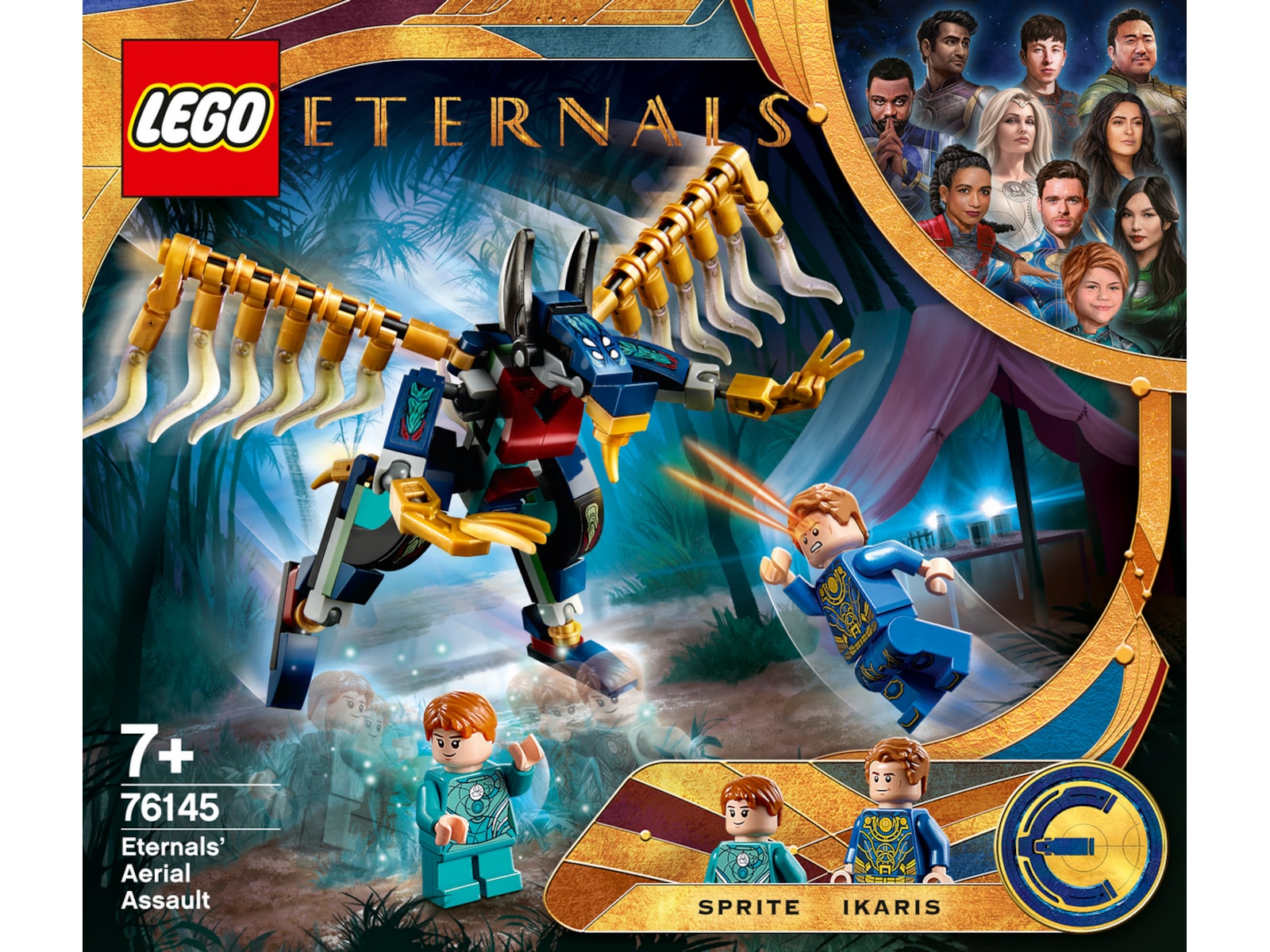 - Alt ligger til rette for grenseløs action med to LEGO® Marvel The Eternals minifigurer – Ikaris og Sprite – en figur av en ond Deviant med bevegelige vinger, to sai-sverd, ett ninjasverd og to power-blastere!