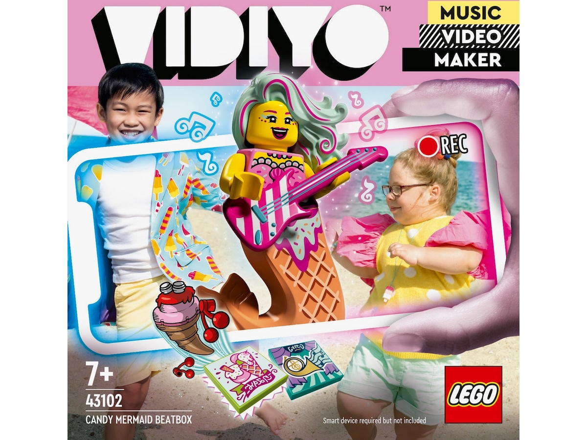 La barn som elsker å danse og opptre, oppleve en verden hvor de kan lage sine egne musikkvideoer. Med settet LEGO VIDIYO Candy Mermaid BeatBox (43102) blir leken enda morsommere. Last ned gratisappen for å skanne havfrueminifiguren og se hva hun kan gjøre på scenen. Etterpå kan barna skanne BeatBits for å låse opp spesialeffekter, utfordringer og annet de kan bruke når de produserer sine egne, unike musikkvideoer som de deler med andre barn i den barnesikrede feeden.