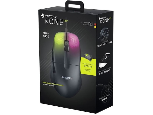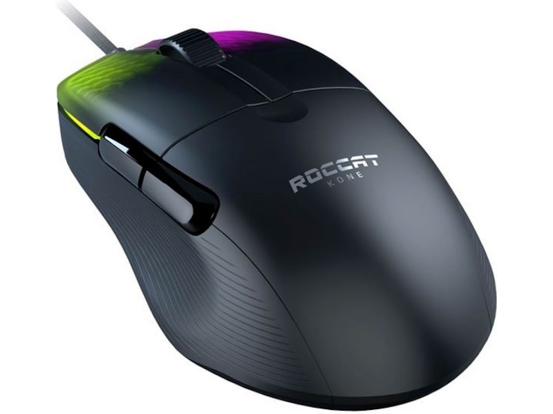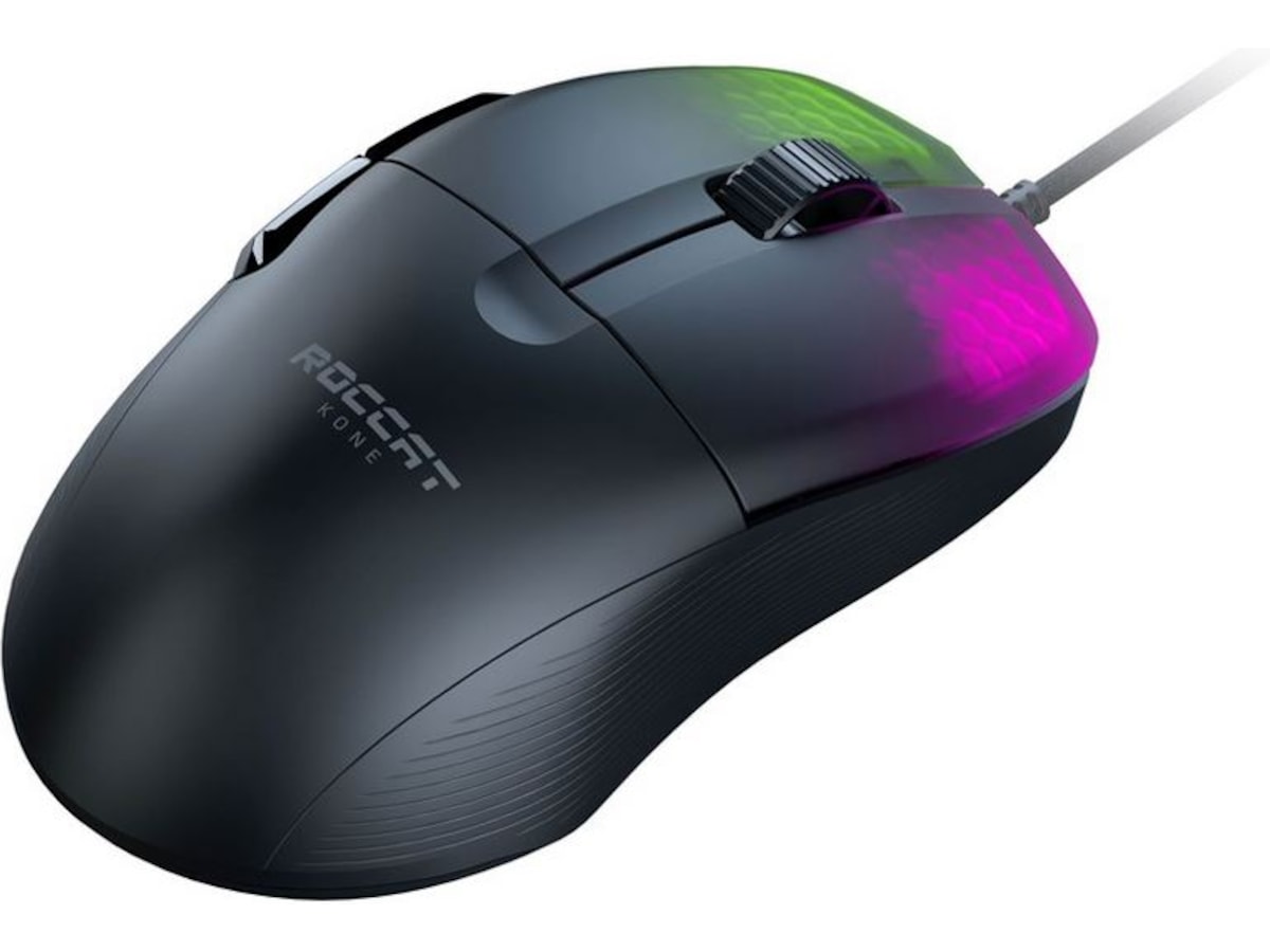 Hils på Roccat Kone Pro, en lett, optisk ergonomisk gamingmus med RGB-lys.