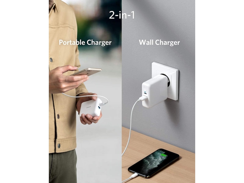 PowerCore III Fusion 5K kombinerer en bærbar lader på 5000 mAh med en kraftig vegglader med to porter i én enkelt kompakt enhet, og lar deg være oppladet hvor som helst.