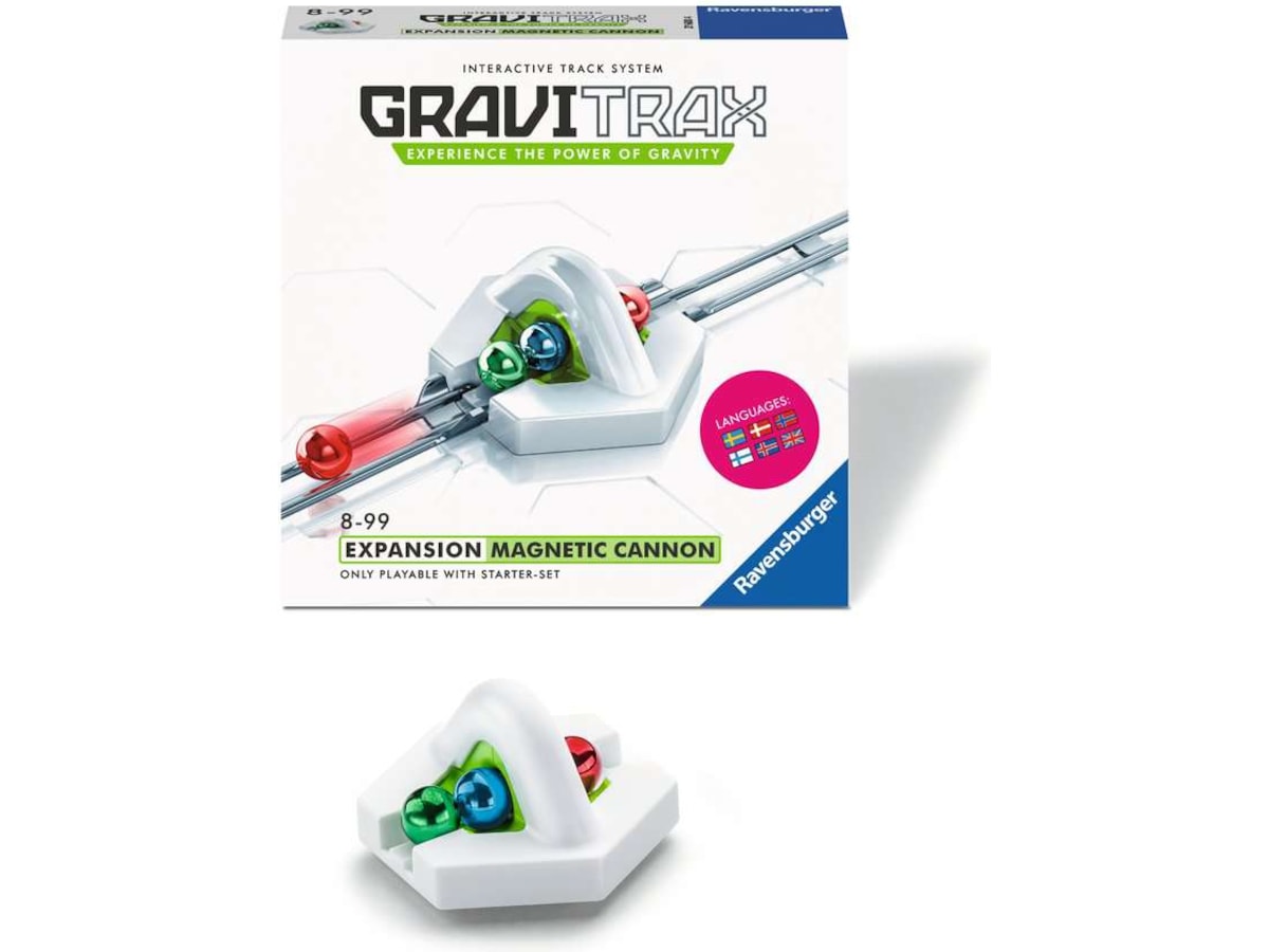 Kombiner den magnetiske kanonen med GraviTrax® startsettet og få enda mer action i kulebanen din. Hvor fort kan kulen din trille med den magnetiske kanonen?