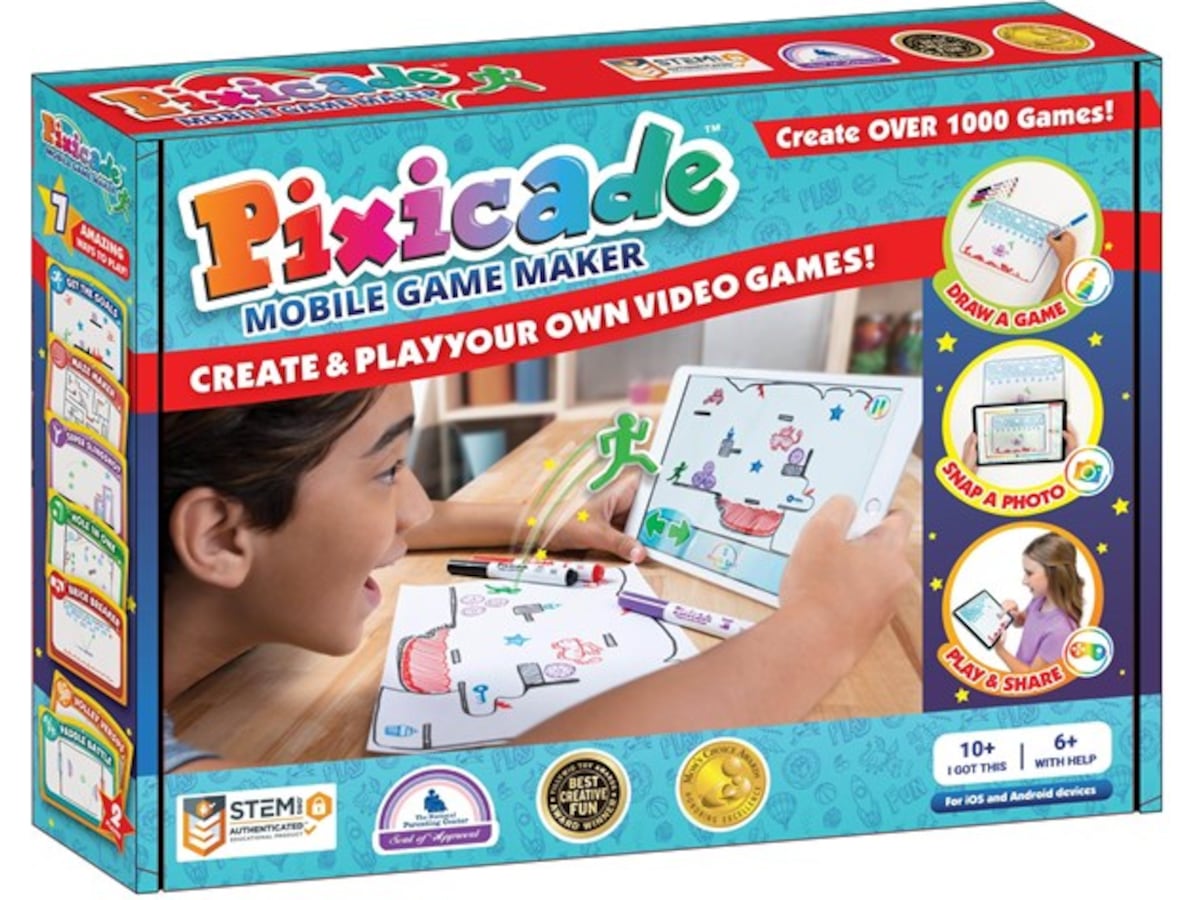 Det er bare å tegne, ta et bilde og spille! Du tegner spillet med de spesielle Pixicade-pennene, tar et bilde av tegningen i Pixicade-appen, og innen 30 sekunder får spillet ditt liv!