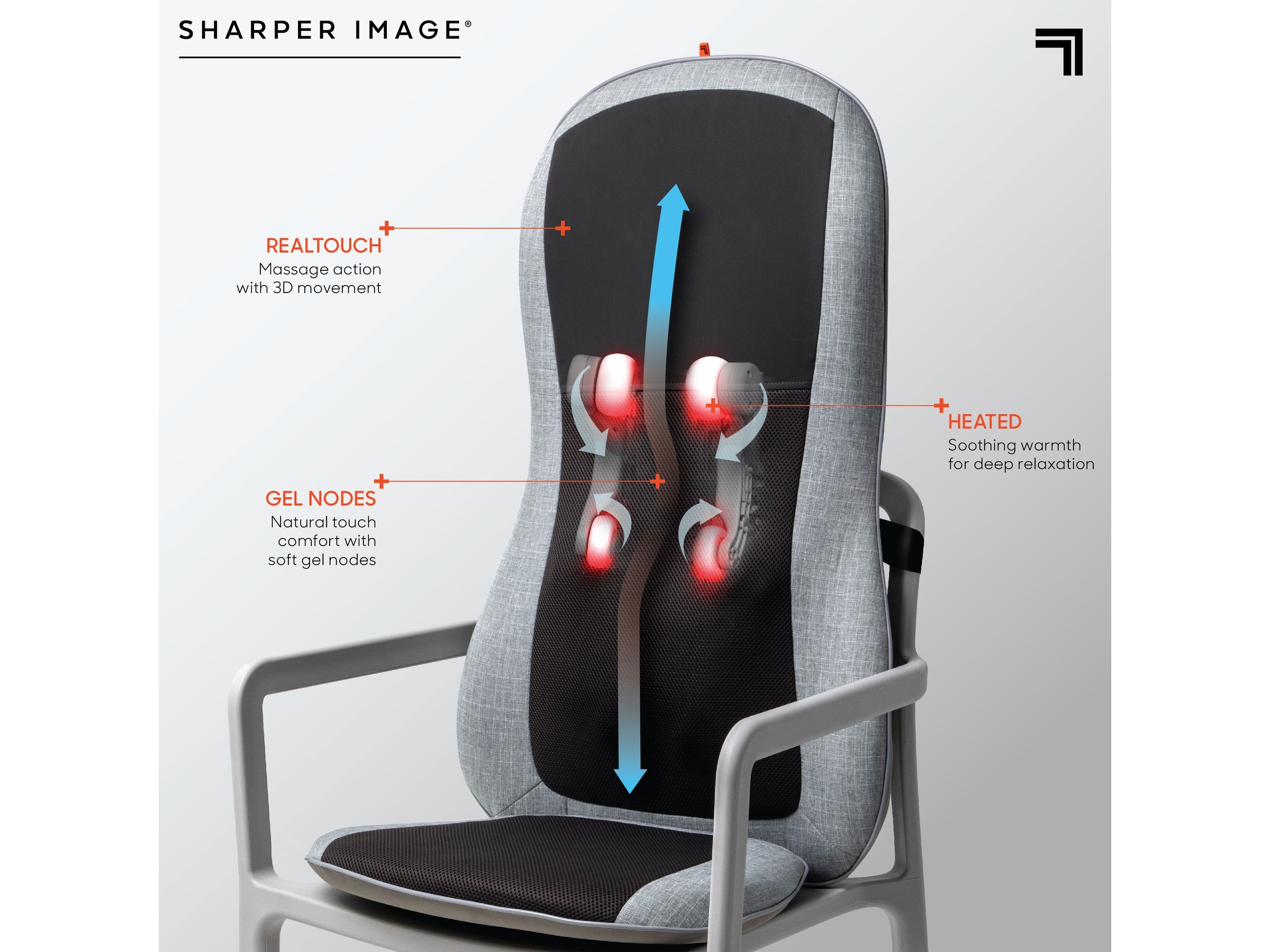De komfortable og fleksible massasjehodene fungerer helt som fingertuppene og gir deg følelsen av en skikkelig massasje hjemme i stua.