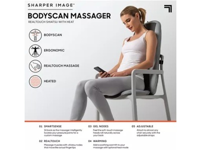Sharper Image nakke- og skuldermassasje bruker den nyeste teknologien for å finne trykkpunktene dine og gi den beste smertelindrende shiatsu-massasjen.