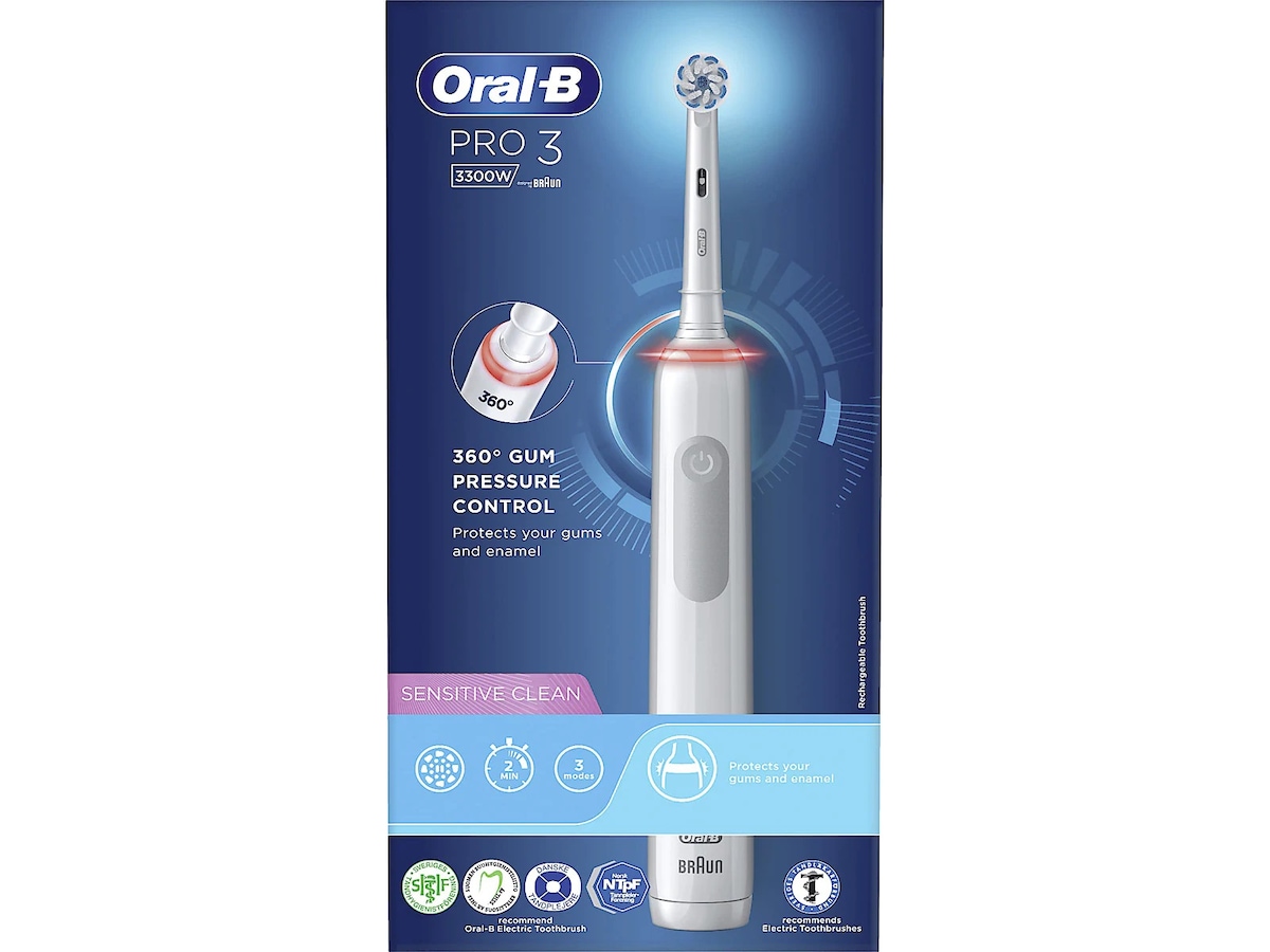 Oral-B PRO3 3300 kombinerer tannbørstens 3D-teknologi med oscillerende, roterende og pulserende bevegelser for et friskere tannkjøtt og hvitere tenner. Det gjør det lettere å pusse tennene slik tannlegene anbefaler.