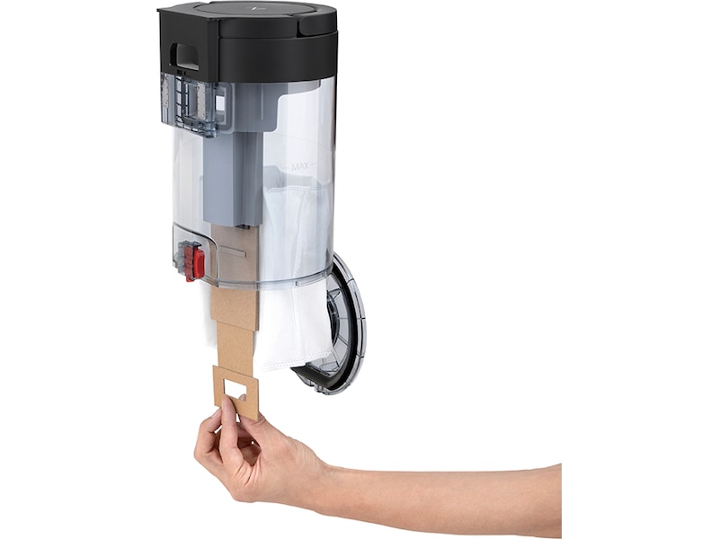 Tøm beholderen uten å lage rot. Den store selvforseglende 3-liters posen beholder opptil 8 ukers støv.