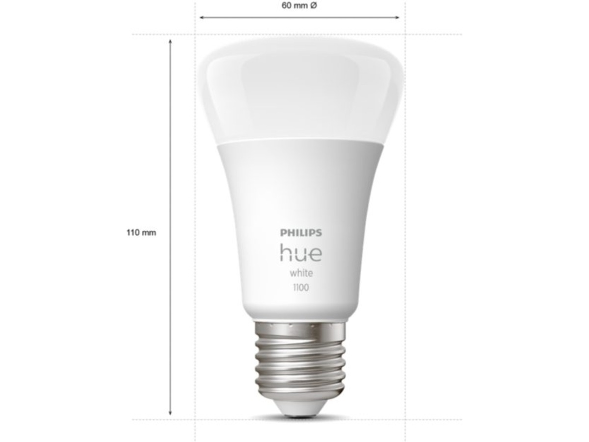 Dette startsettet inneholder tre Philips Hue White-lyskilder med E27-sokkel, samt en Hue Bridge-kontrollenhet for maksimert funksjonalitet og en dimmer som er trådløse veggbrytere som også fungerer som bærbare fjernkontroller.