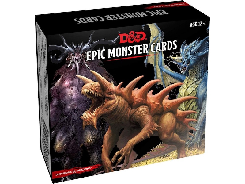 Disse 77 slitesterke, laminerte kortene i dobbelt størrelse representerer alle legendariske monstre som finnes i Dungeons & Dragons’ Monsterhåndbok, Volo's Guide to Monsters og Mordenkainen’s Tome of Foes. Fra en liches rustningsklasse til et enhjørninghorn-angrep, lar monsterkortene Dungeon Masters velge, organisere og få tilgang til den informasjonen de trenger for å holde møter i gang uten å måtte bla i bøkene.
