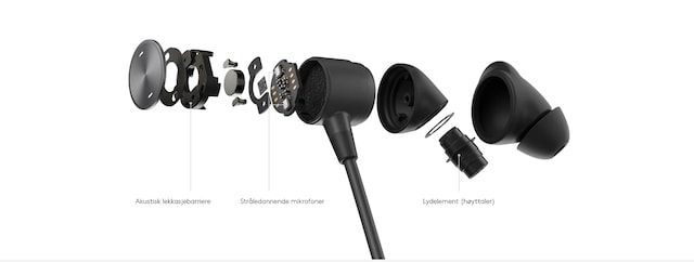Medfølgende tilbehør Bærepose, USB-C kontrollenhet, 4 par silikonørepropper (ekstra små, små, medium, large), USB-C til USB-A adapter