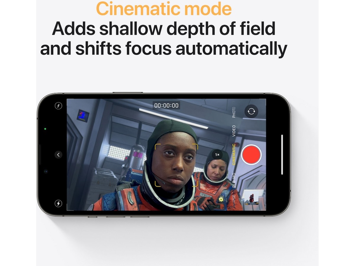 Kameramoduser Bred fargeopptak for bilder og Live Photos, Live Photos, Makromodus, Panorama, Apple ProRAW, Portrait Lighting, Tidsforløp (nattmodus), Portrettmodus med avansert bokeh- og dybdekontroll, Kinomodus, Bruddmodus, Nattmodus