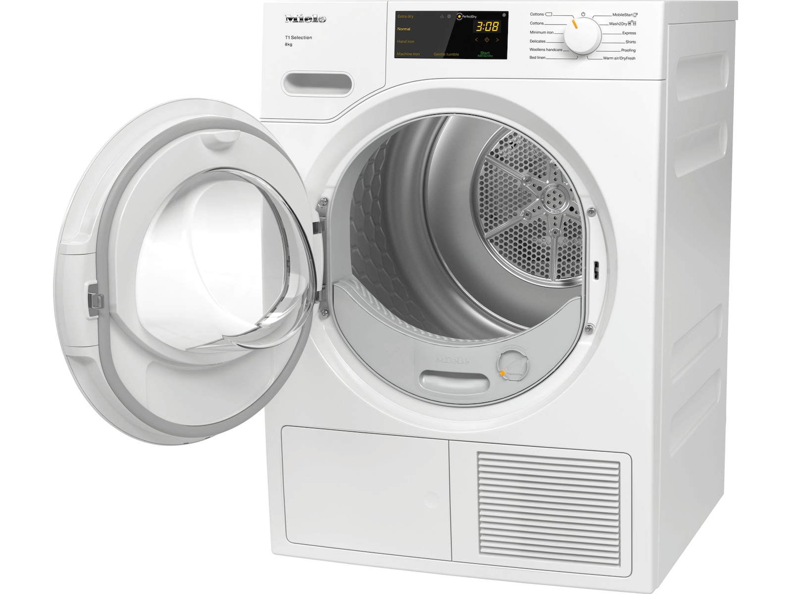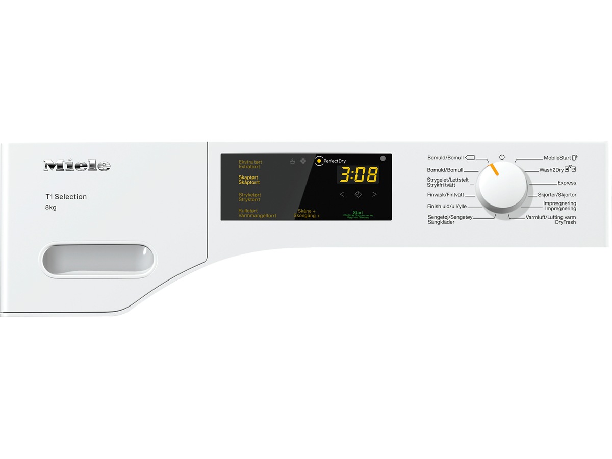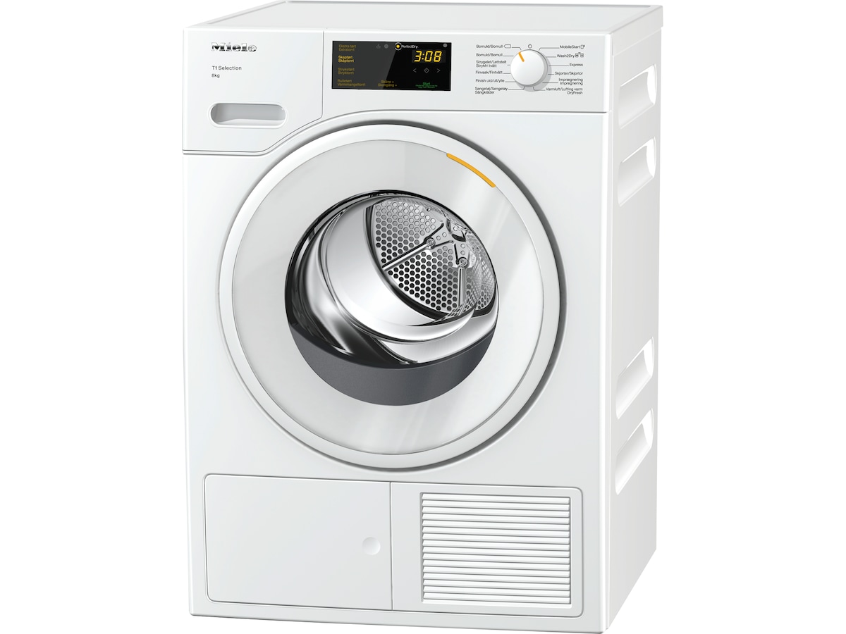 T1 Varmepumpetørketrommel med A++ og Miele@home for smart tøypleie.