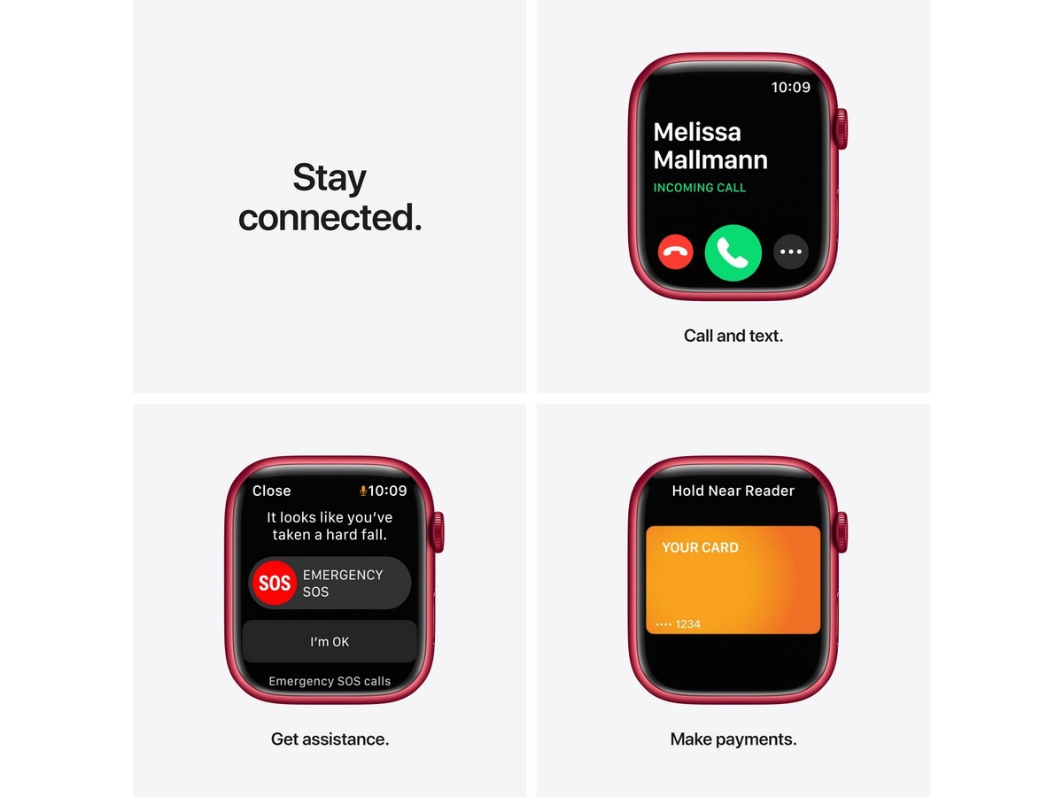 Vår hittil største, mest avanserte Retina-skjerm som alltid er på, gjør alt på Apple Watch Series 7 enda større og bedre. Series 7 er vår mest solide Apple Watch noensinne, nå med enda mer støtsikkert glass på forsiden. Avanserte funksjoner gjør det mulig å måle oksygenmetningen i blodet,¹ ta et EKG når som helst² og bruke apper for oppmerksomt nærvær og søvnsporing. Den registrerer og måler også flere titalls treningsformer, blant annet de nye treningsøktene taichi og pilates.