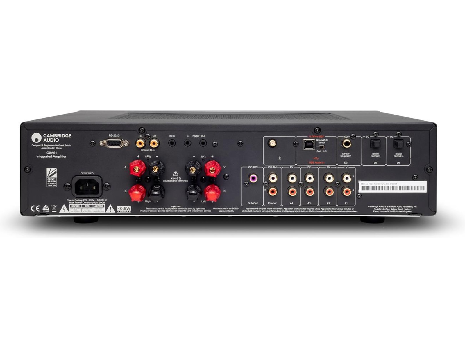Doble høyttaler uttak (A+B) i kombinasjon med egen subwoofer-utgang gir stor fleksibilitet. I tillegg har CXA 61 tilkobling (3.5 mm stereo) for en ekstra lydkilde i front, perfekt for hurtig tilkobling av telefon eller tilsvarende enheter.