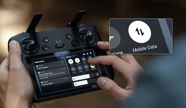 Med DJI Cellular Transmission Dongle installert kan DJI RC Pro operere via 4G-signaler, og gi stabil kommunikasjon selv når dronen flyr i urbane områder, tettvokst skog og andre komplekse miljøer. O3+-overføring koordineres med 4G-systemet og veksler sømløst for å sikre jevne opptak under flyvningen.