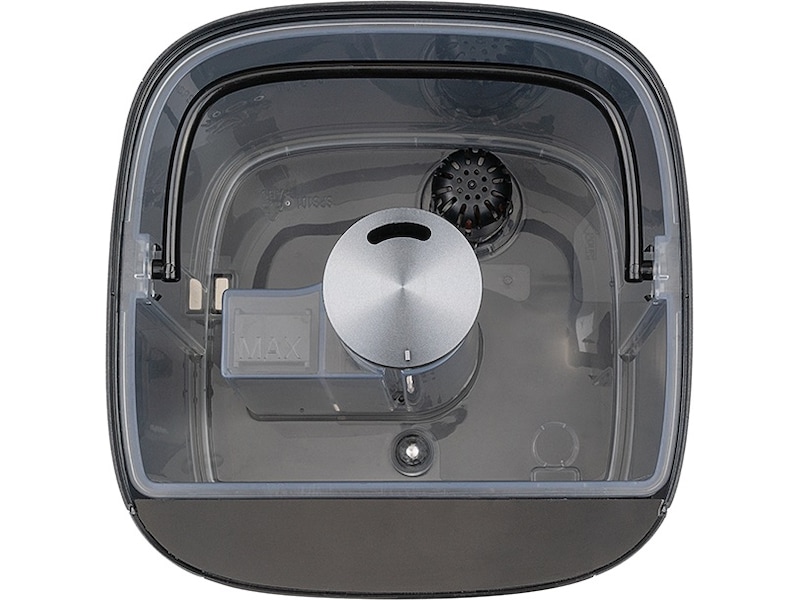 Det er enkelt å fylle på vann da dette gjøres enkelt fra toppen av maskinen. Åpne lokket og ta ut bøtten for å fylle på vann. Evt kan du helle vann direkte i bøtten uten å ta den ut først.