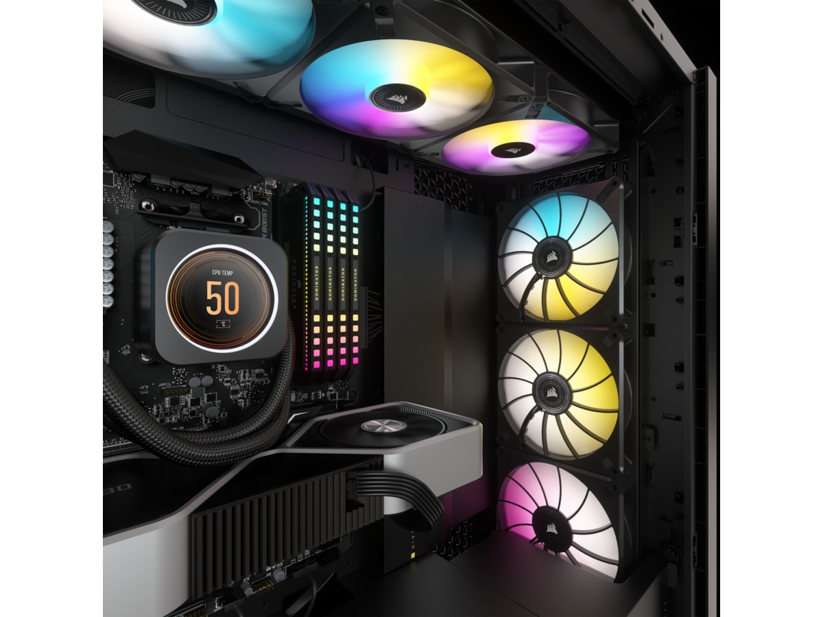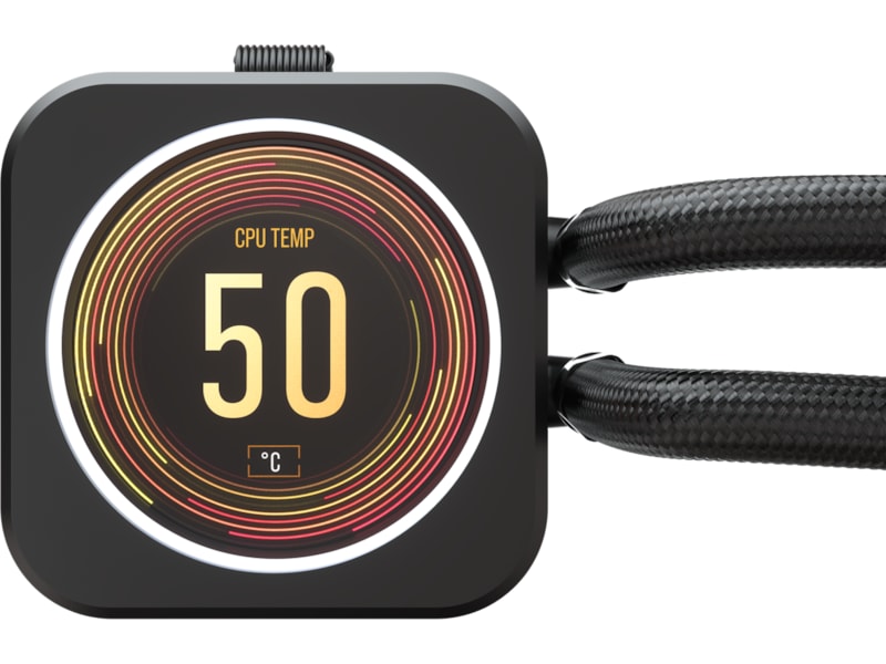 Hver Elite LCD-kjøler leveres med en iCUE COMMANDER CORE som kan kontrollere belysningen og viftehastighetene til ikke bare de medfølgende viftene, men for opptil seks vifter totalt. Gjør et hvilket som helst kabinett til et smart kabinett.