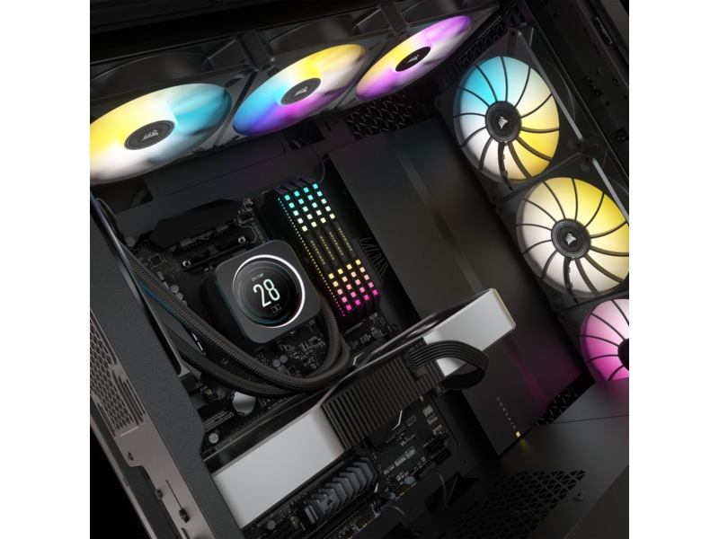 De splitter nye viftene med magnetisk levitasjon, CORSAIR ML RGB ELITE med åtte RGB LED-lys per vifte og AirGuide-teknologi, kanaliserer luftstrømmen for ekstrem CPU-kjøleytelse.
