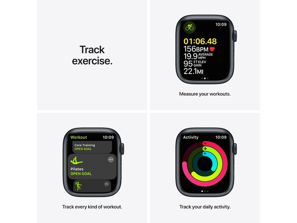 Vår hittil største, mest avanserte Retina-skjerm som alltid er på, gjør alt på Apple Watch Series 7 enda større og bedre. Series 7 er vår mest solide Apple Watch noensinne, nå med enda mer støtsikkert glass på forsiden. Avanserte funksjoner gjør det mulig å måle oksygenmetningen i blodet,¹ ta et EKG når som helst² og bruke apper for oppmerksomt nærvær og søvnsporing. Den registrerer og måler også flere titalls treningsformer, blant annet de nye treningsøktene taichi og pilates.