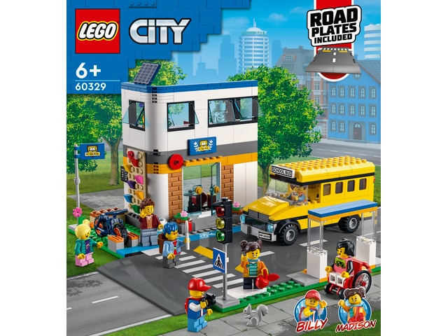 - LEGO® City lekesett med skole som tema for barn fra seks år – LEGO City Skoledag (60329) er fullt av detaljer som får fart på den fantasifulle leken