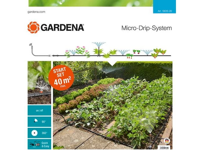 GARDENA Micro-Drip-System startsett for plantearealer brukes til praktisk vanning av blomster- og grønnsaksbed, og er ideelle for korte vekstperioder i grønnsaksbed.