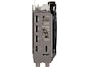 Undersiden av kortet avslører en rekke forbedringer. Det meste av baksiden er dekket av en beskyttende metallbakplate som har en fremtredende bred ventilasjon. Ventilen slipper ut varm luft ut mot eksosvifter i kabinettet i stedet for å resirkuleres tilbake i kjøleren. Under GPU-en gir en brakett konsistent trykk mellom sokkelen og varmesprederen. Rustfritt stål brukes til I/U-braketten for å beskytte porter og gi et sikrere feste. En praktisk plassert Dual Bios-bryter lar deg tilpasse kortets standard ytelsesprofil uten behov for programvare.