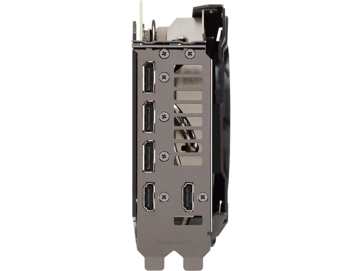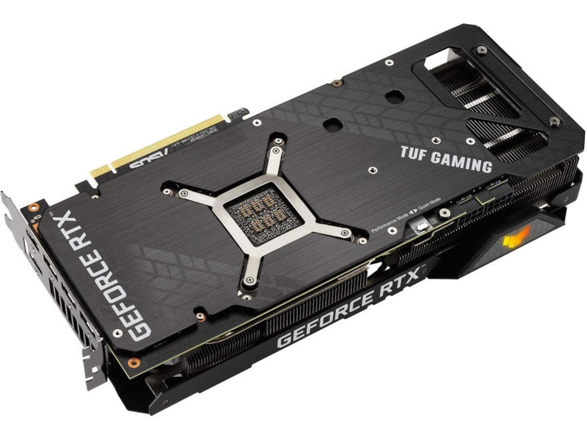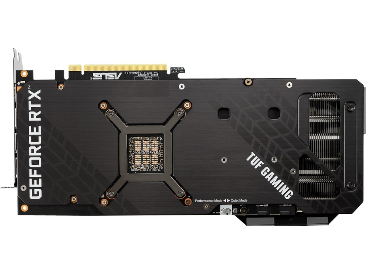 Varmesprederen trekker varme opp i varmerør som fører den gjennom en finnestabel som fyller det meste av kortets fotavtrykk på 2,7-spor. Denne generasjonen av TUF Gaming-skjermkort har også en dedikert kjøleribbe for VRAM for å holde temperaturen godt under maksimale driftsspesifikasjoner.