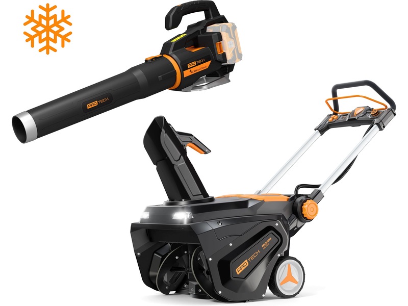 +62-volt trådløs snøfreser med en svært effektiv børsteløs motor leverer god bensinlignende effekt med et lavt støynivå. Med en arbeidsbredde på 56 cm og justerbar hastighet, kaster Protech-snøfreseren snø opptil 9 meter og rydder eiendommen din på null komma niks! Den er utstyrt med to spor har plass til 2 batterier på 5 Ah samtidig, slik at du kan forlenge driftstiden. I tillegg gjør det sammenleggbare håndtaket og den lette designen (28 kg) den nye snøfreseren lett å oppbevare og manøvrere.