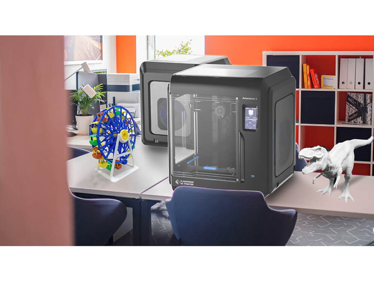 Flashforge Adventurer 4, støtter utskrift i store volumer, automatisk utjevning og støtter flere maskiner styrt på én datamaskin. Den imøtekommer utskriftsbehovene bedre for bruk både hjemme, på skolen og på kontoret.