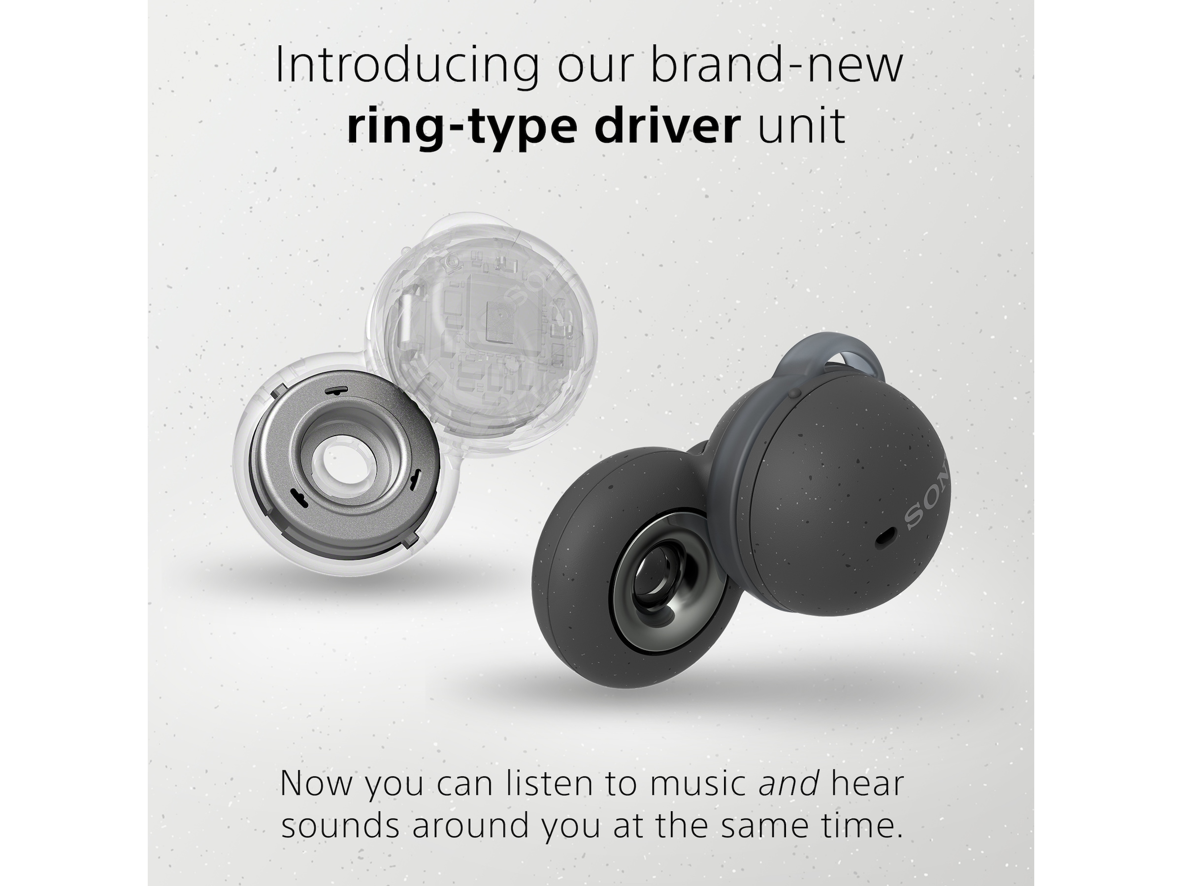 LinkBuds (produktkode WF-L900) integrerer alle verdenene dine takket være et åpent ringdesign som lar deg høre samtaler, musikk og annet nettinnhold når som helst og hvor som helst – samtidig som hodetelefonene holder deg oppmerksom på lydene rundt deg. Alt dette er kombinert i et lite og lettvektig design, som gjør at du knapt føler at du har dem på deg. Dette betyr at du komfortabelt kan bruke dem i flere timer på rad, samtidig som du er tilkoblet og alltid tilgjengelig - du kommer aldri til å gå glipp av noe viktig som skjer i livet ditt.