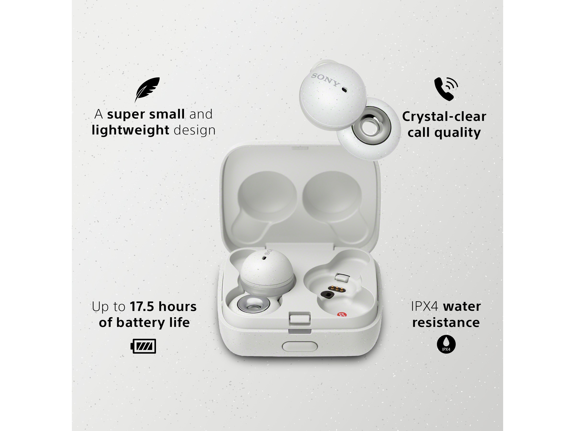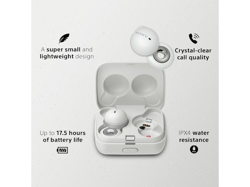 Med en rekke smarte lydfunksjoner som Adaptive Sound Control samt et bredt trykkområde for større avspillingskontroll, er LinkBuds superenkle å bruke. De er også IPX4-vannresistente med opptil 17,5 timers batteritid og hurtiglading, slik at du aldri trenger å slå av hodetelefonene.