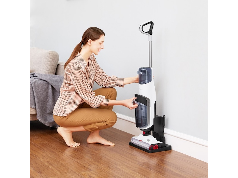 Kjør jevnt rundt stolben, bordben og menneskeben med et smidig rengjøringshode. Og med to valser som roterer mot hverandre kan du skyve og trekke med bare én finger.