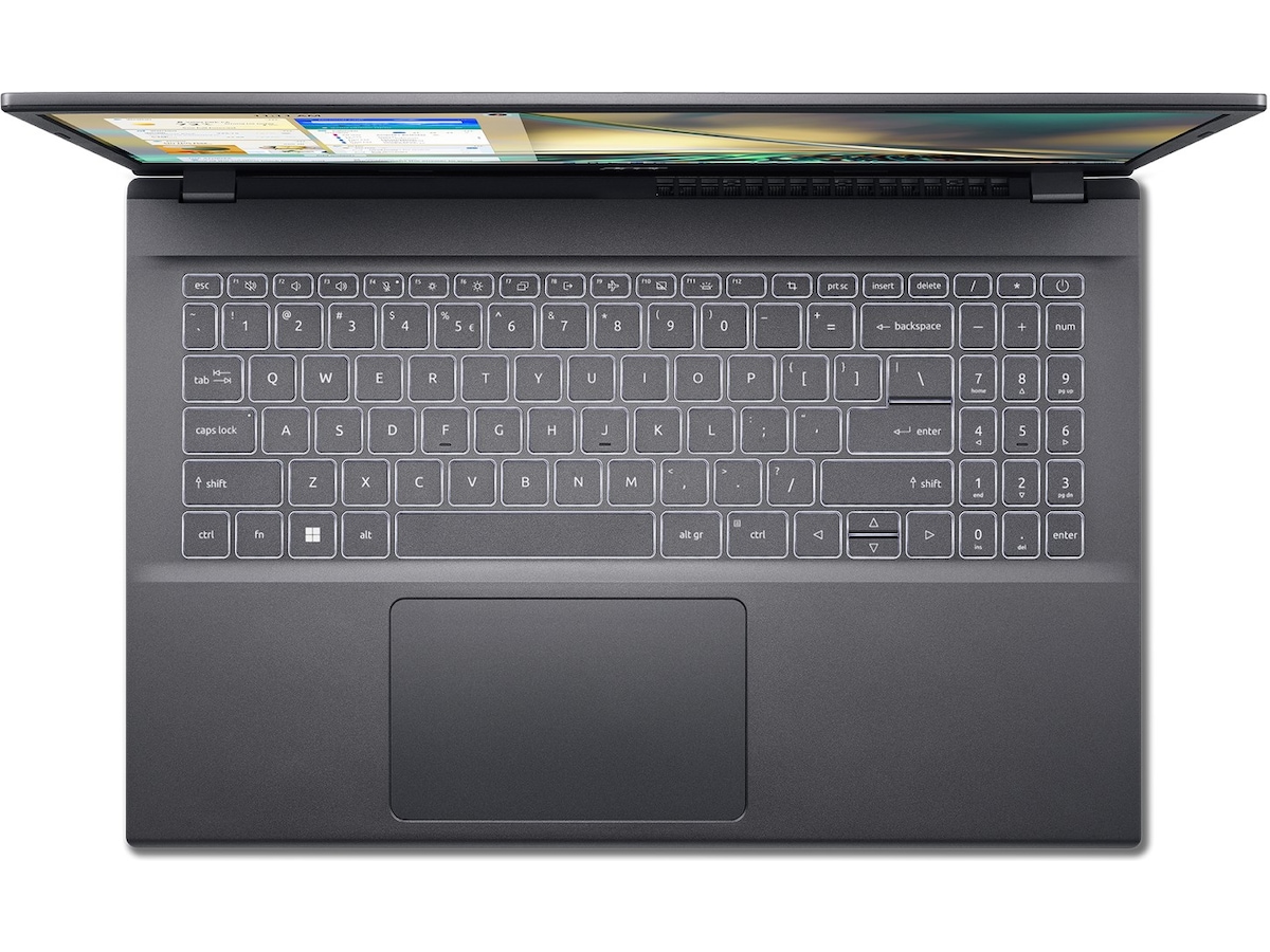 Aspire 5 har et metalldeksel og et hevet hengseldesign med ergonomiske funksjoner. Den er tilgjengelig i en stålgrå farge som matcher stilen din, og et bakgrunnsbelyst tastatur slik at du kan gjøre mer uansett hvor du er, når som helst.