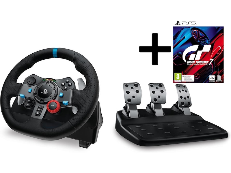 Logitech G29 Driving Force Racing Wheel - Ratt og Pedaler for PS3, PS4, PS5 og PC - Bundlet med Gran Turismo 7 for PS5