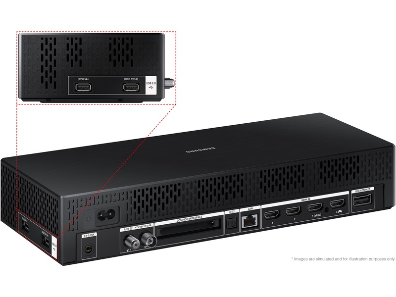 Kontakttype Digital lydutgang (optisk), RS-232C, 2 x USB, One Connect, USB, 4 x HDMI, Nettverk