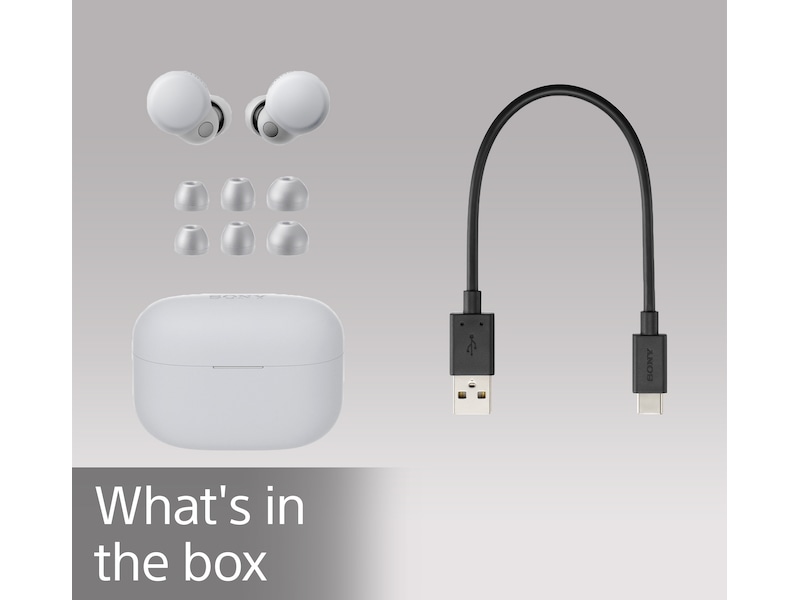 LinkBuds S har intuitive berøringskontrollinnstillinger – for eksempel kan du trykke på venstre hodetelefon for å bytte fra støyreduksjon til omgivelseslyd, holde trykket for Quick Attention, eller dobbelttrykke på høyre for å hoppe til neste spor.