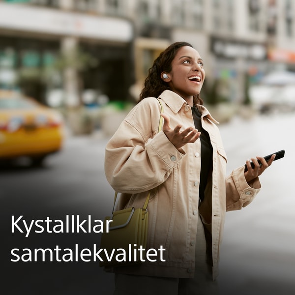Venter du en telefonsamtale? Med Precise Voice Pickup-teknologi som optimalt kontrollerer mikrofonene på utsiden og innsiden av hodetelefonen, og avansert lydsignalbehandling, er samtalene krystallklare, selv i støyende omgivelser. Sonys støyreduksjonsalgoritme ble utviklet med AI maskinlæring ved å bruke over 500 millioner stemmeprøver for å undertrykke omgivelsesstøy og trekke ut stemmen din tydelig.