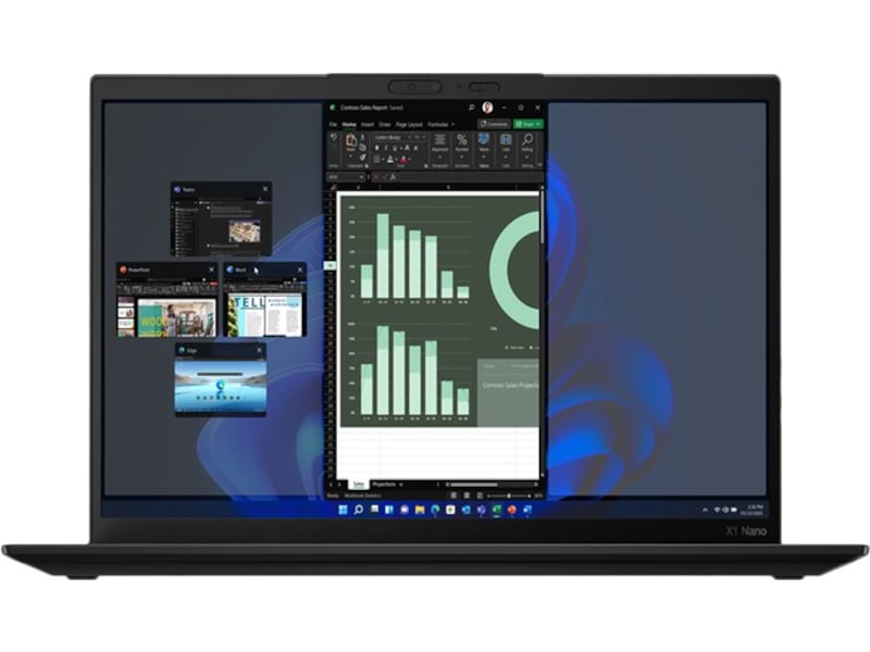ThinkPad X1 Nano er drevet av 12. generasjon Intel® Core™ i7-prosessor og opptil 16 GB minne, og takler alt uten problemer. Denne 13" bærbare datamaskinen er designet med tanke på ytelse og respons på farten, og kommer med to USB-C Thunderbolt™ 4-porter, slik at du kan overføre data lynraskt og være fleksibel med flere høyoppløselige skjermer.