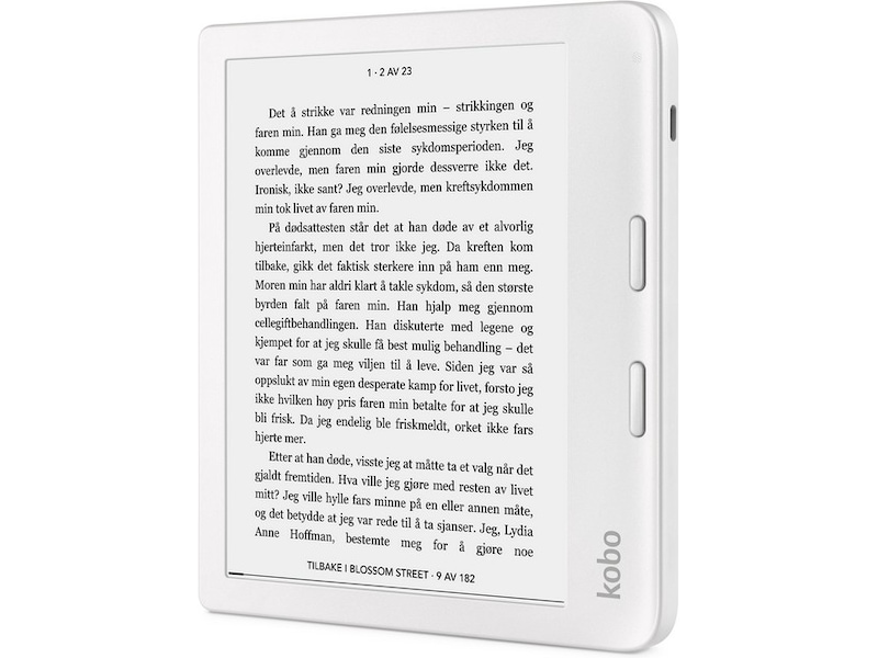 Neste generasjon Kobo Libra 2 passer til hvordan du leser. Kobo Libra 2 en viktig del av hvordan du leser i livet ditt, med større oppbevaringsplass, raskere e-Ink skjerm og Bluetooth trådløs teknologi slik at du kan høre på Kobo-lydbøker. Full av funksjoner og personlighet – og 32 GB lagring for alle e-bøkene du har – Kobo Libra 2 er laget for mer. Ergonomisk design holder leselysten for hånden – og knapper for å bla om sidene holder historien i gang mens du nipper til kaffen, rører i pastasausen du er ekspert på eller steller det nyfødte barnet ditt – så du kan lese og lese, samme hva. Gjør Kobo Libra 2 personlig, og velg mellom modeller i svart eller hvit, og iøynefallende SleepCover-farger. Vi skapte Kobo Libra 2 med omtanke for din lidenskap for lesing, og livet ditt. Et lesebrett til deg, en historie til deg.