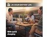 Med enorme 24 timers batterilevetid og hurtiglading (10 minutters lading for 70 minutter avspilling), kan du i tillegg holde feststemningen i gang hele dagen og natten.